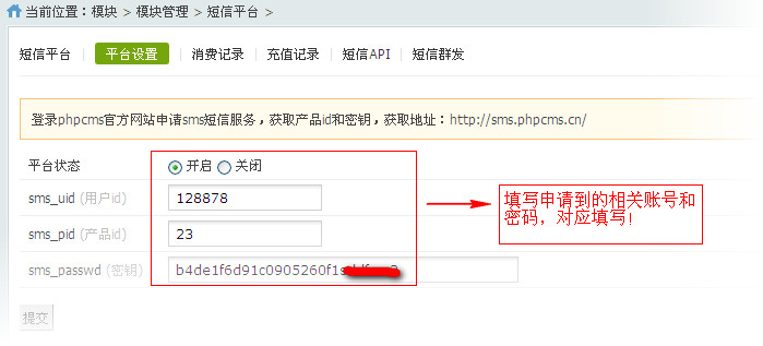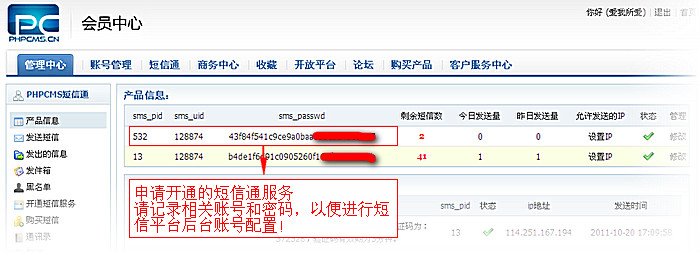 记录相关短信通账号和密码,以便进行后台配置1.平台设置