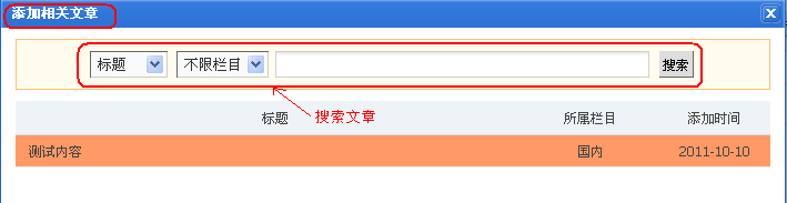 你可以选择不同栏目的内容进行关联。如下图我已经添加一条相关的内容"测试内容"